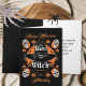 Cast a charming spell this spooky season with our ‘Spellbinding Witch Halloween Greeting Card.’ The artwork showcases a classic witch hat adorned with stars, surrounded by scary pumpkins, jack-o'-lanterns, spooky skulls, and fluttering whimsical bats. The grunge background adds a retro touch, making it ideal for fans of old-school Halloween aesthetics. Perfect for sending bewitching vibes to friends and family, this card captures the essence of Halloween with a touch of humour. Whether you’re sharing Halloween music playlists or inviting friends to a costume party, personalize this card and make it your own.