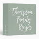 Custom Script Modern Family Recipes 3 Ring Binder in Dusty Sage Green
