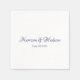 Personalized navy blue Script Custom Couple Name and Date Wedding Paper Napkins.
