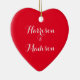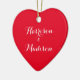Personalized Custom script Couple Christmas Heart Ceramic Ornament.