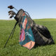 monogrammed signature name style on an artistic drawing of botanical leaves Golf Towel using ink pen and brushing and applying multiple artistic harmonic colours of Pink, purple, blue and navy.