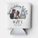 Custom printed, personalized Calligraphy Script font template CAN COOLER SLEEVE WEDDING FAVORS. Template personalised on front and back of cooler sleeve. UPPER TEXT - main wedding statement. Replace IMAGE with your wedding couple, engagement, wedding photo. LOWER TEXT - The monogram template for the initials of the bride and groom with an ampersand symbol to compliment the upper text. The year date line can be changed to the exact wedding date, such as 05.08.20XX, great for use as a Save the Date favour. Available on can cooler sleeves, bottle cooler sleeves and seltzer can cooler sleeves, or transfer template to any product. BIG MULTIPLE PURCHASE DISCOUNTS ON THIS PRODUCT. Design, make create your own customizable wedding favours (favours) from a template. Personalize unique favours for your wedding guests with your wedding photo, monogram, image upload, and fully customize your wedding text with hundreds of modern, script, calligraphy, elegant, retro, vintage, traditional, and other font style options. These customized wedding favours also make top groomsmen and bridesmaid gifts for your bachelor or bachelorette party and your bridal shower and as gifts for the wedding couple.