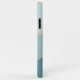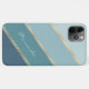 Contemporary girly teal blue and ocean seafoam green coloured striped cell phone case. With room to customize with a name, monogram, or initials of your choice. Beautiful, modern, and cool cover for the trend-savvy and art-loving hip trendsetter, artsy motif lover who wants to protect their phone from dust and dirt, wear and tear. This design is available for Apple iPhone 6, 7, and 8 Plus, 10 or X, XR, XS, 11, 12, 13 Mini, and 14 Pro Max cellphone cases. Show off your style, look fashionable, and feel stylish with a unique design on a mobile device accessory of your choice.