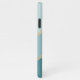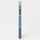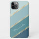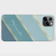 Contemporary girly teal blue and ocean seafoam green coloured striped cell phone case. With room to customize with a name, monogram, or initials of your choice. Beautiful, modern, and cool cover for the trend-savvy and art-loving hip trendsetter, artsy motif lover who wants to protect their phone from dust and dirt, wear and tear. This design is available for Apple iPhone 6, 7, and 8 Plus, 10 or X, XR, XS, 11, 12, 13 Mini, and 14 Pro Max cellphone cases. Show off your style, look fashionable, and feel stylish with a unique design on a mobile device accessory of your choice.