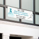 Sewing themed business banner, with graphics of a pretty aqua formal dress and a sewing needle with thread. The top of the banner is fun graphics of a safety pin. Custom aqua and black text fields are ready to personalize for your business needs.