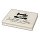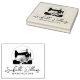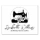 This custom stamp features a sewing machine with flowers, a name and slogan.