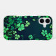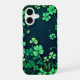 A lush field of shamrocks and clovers in varying shades of green, accented with delicate golden edges, creating a serene and vibrant botanical scene.
