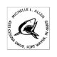 Personalized shark self inking address stamp. This fun return address stamp is decorated with a shark with open mouth and teeth showing. It's personalized with a custom name and mailing address printed around the shark silhouette. Great envelope seal and return address stamp for shark lovers.