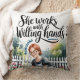A serene watercolor illustration of a joyful woman tending to a lush garden, symbolizing diligence and care. The text "She works with willing hands" is elegantly incorporated, inspiring faith and devotion. personalized with name.