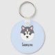 This custom key chain features an illustration of a blue-eyed Siberian Husky puppy cartoon. Personalize these stickers with your name or a text of your choosing.