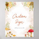 Custom sign with mushrooms and a woodland theme for a baby shower party. This custom sign is perfect for a woodland baby shower. With watercolor foliage and mushrooms, this sign is perfect for delicate party decoration with a rustic theme. All text is editable so you can change the wording to whatever you need.