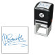 Easily personalize this self-inking rubber stamp with your own custom signature. Rubber stamping your signature saves time for you and your employees. Just upload a photograph of your own signature when prompted. Available in different housing colours and ink colours. No minimum order quantity. No setup fees.
