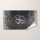 Custom Silver Glitter Black Sparkle Monogram Bath Towel Set