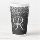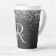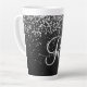 Custom Silver Glitter Black Sparkle Monogram Latte Mug
