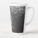 Easily personalize this trendy elegant latte mug design featuring pretty silver sparkling glitter on a black brushed metallic background.