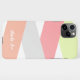 Contemporary and classy pastel lime green, light sunny orange, coral red pink, and grey coloured striped block art pattern on a white background. With the option to customize or personalize with a name, monogram, or initials of your choice. A cute, modern, and pretty decorative design for the lover of simple yet elegant colourful minimalism patterns. Beautiful, modern, and cool cover for the trend-savvy and art-loving hip trendsetter, artsy motif lover who wants to protect their phone from dust and dirt, wear and tear. This design is available in Apple iPhone 6, 7, and 8 Plus, 10 or X, XR, XS, 11, 12, 13 Mini, 14, 15 Plus, and Pro Max cellphone cases. Show off your style, look fashionable trendy, and feel stylish with a unique design on a mobile device accessory of your choice.
