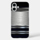 Contemporary shiny black and stainless steel brushed metal steel pattern. With room to customize or personalize with a name, monogram, or initials of your choice. Beautiful, modern, and cool cover for the trend-savvy and art-loving hip trendsetter, artsy motif lover who wants to protect their phone from dust and dirt, wear and tear. This design is available in Apple iPhone 6, 7, 8 Plus, 10 or X, XR, XS, 11, 12, 13 Mini, 14, 15 Plus, and Pro Max cellphone cases. Show off your style, look fashionable trendy, and feel stylish with a unique design on a mobile device accessory of your choice.