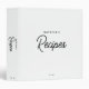 A simple minimalist white background and black script text recipe cookbook binder that can be customized to your name and volume number. An ideal gift for food lovers, bridal shower, foodies, cooks, chefs etc. Keep your family recipes, baking recipes, mom's recipes or favourite cooking recipes all in one book. Change the volume number and make it a series! Great gift for anyone who loves the kitchen. Customize the text and make it your own.