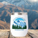 Customized wine tumbler for a ski lodge or resort in the Colorado mountains or a beautiful cabin in the forest. This cool gift features a pretty drawing of snow capped mountains in front of green fir trees. Great nature marketing for an hotel or vacation rental.