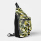 This custom sling bag is shown in a black and olive green multi colour animal art print with black colour accents, buy as shown or add to it.