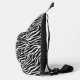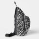 This custom sling bag is shown in a black and white zebra animal art print, buy as shown or add to it.