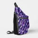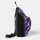 This custom sling bag is shown in a black and purple multi colour art print, buy as shown or add to it.