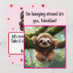 This Valentine’s Day, let your love “hang around” with this adorable sloth-themed card! Featuring the sweet message, "I'm hanging around for you, Valentine," and a sloth hanging from a tree holding a heart, this card is perfect for showing your special someone how much they mean to you. Whether it’s for a partner, friend, or anyone you hold dear, this playful design is sure to bring a smile and warm their heart.