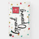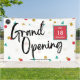 A simple star and circle holiday vibes custom business grand opening banner in a modern minimalist style that can be easily updated with your company name, logo, and opening date details. The perfect solution for any business to promote your store.