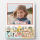Bright and colourful scene offers a spectacular view of Southern California - wacky characters frolic on the beach and desert of SoCal showcasing Los Angeles, Orange County, San Diego, Santa Barbara, Riverside, Palm Springs, El Centro, Lake Arrowhead, Big Bear, Salton Sea, Anza Borrego and Joshua Tree parks as well as the border cities of Tijuana, Tecate and Mexicali. This charming scene has it all – a surfer hangs ten while a killer whale leaps out of the water, zoo animals greet the tourists, wine lovers make a toast as a hiker is noticed by a UFO and much more…