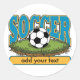 A Soccer sits ready on the grass with large blue SOCCER text outlined in yellow! Add your custom text below this Soccer design in the space provided. Perfect for any Soccer player or Soccer fan, add names, school names or sports message! Customizable Soccer shirts and Soccer gifts!
