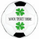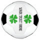 Custom soccer ball with green lucky clover. Personalize with your text. Vintage shamrock logo and text template. Cool sports gift idea for St Patrick's Day, Birthday and more.