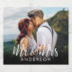 Modern sparkling wine MR and Mrs wedding Photo Labels. This design features of bride and grooms photograph and Mr and Mrs white overlay in trendy lettering.