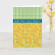 A pretty Greeting Card to personalise for St David's Day, with a pattern of golden daffodils, from a handpainted watercolour design by Judy Adamson, teamed with a coordinating green check gingham pattern.