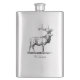 Handsome stainless steel flask, with graphics of a antlered large stag deer. Personalize the grey text, to suit your needs. Great personalized gift idea for groomsmen, hunters, or anyone.
