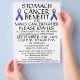 This beautiful stomach cancer benefit flyer is perfect for advertising a cancer benefit and auction once you personalize with all your own benefit details in the provided boxes. See our store for coordinating cancer benefit posters and also specific types of cancer benefit flyers. The back of this stomach cancer benefit flyer has intentionally been left blank in case you would like to add your own additional details, photos or information.