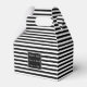 This striped favour box is black and white. Personalize the favour box with your desired text, such as the bride and groom's name or wedding date.