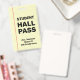 This modern student hall pass badge features a lined paper background design, providing a clean look for any school. Customize it with the teacher's name, classroom number, and grade level. Ideal for schools and educators, this durable pass ensures students have a clear and recognizable ID when leaving the classroom.
