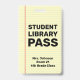 This modern student library pass badge features a lined paper background design, providing a clean look for any school. Customize it with the teacher's name, classroom number, and grade level. Ideal for schools and educators, this durable pass ensures students have a clear and recognizable ID when leaving the classroom.