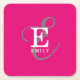 Custom Stylish Monogram Typography Hot Pink Square Paper Coaster
