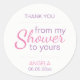 Add these pretty thank you FROM MY SHOWER TO YOURS stickers for your next bridal shower (or baby shower). Add them to your homemade scrubs on mason jar covers. Purple and pink colours. Template stickers / labels - text can be edited. Contact designer for specific colour or design.