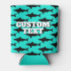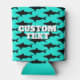 Custom summer can cooler with shark silhouettes. Cool Birthday gift idea for friends, family, boat captain, sailor, skipper, fisher, scuba diver, swimmer, diving buddy and others. Turquoise blue sea colour or customize it. Add your own personalized name or funny quote. Double sided print. Great for home, boating, yachting, sailing, fishing, nautical party and more.