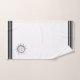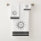 Three black stripes on white and custom sun moon image. Elegant modern towel set.