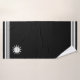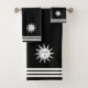 Three stripes on black and custom white sun and moon image. Elegant modern towel set.