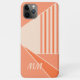 Contemporary dark, medium, light, and pastel summer orange coloured geometric stripes, lines, and triangle shapes mosaic pattern design. With room to customize or personalize with a monogram or initials of your choice. Beautiful, modern, and cool cover for the trend-savvy and art-loving hip trendsetter, artsy motif lover who wants to protect their phone from dust and dirt, wear and tear. This design is available in Apple iPhone 6, 7, 8, 10 or X, XR, XS, 11, 12, 13 Mini, 14, 15 Plus, and Pro Max cellphone cases. Show off your style, look fashionable trendy, and feel stylish with a unique design on a mobile device accessory of your choice.