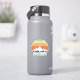 Cool custom family reunion keepsake sticker for an autumn get-together with cousins, aunts, uncles, and grandparents. Invite the whole crew with your last name and year in green surrounding the beautiful fall sunset image over the mountains and trees. Great personalized group camping trip design.