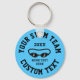 Custom swimming team keychain for swimmers. Add your own personalized text. Modern design with swim goggles logo or custom icon. Blue pool colour background.