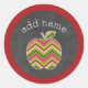 Custom Teacher Apple - Red Green Chevron Pattern Classic Round Sticker