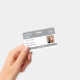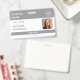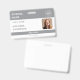 A horizontal modern minimalist personalized teacher ID badge with school logo, photo and details. Personalize with your logo, photo and details to create your own unique elegant white business badge.
