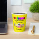 Bright yellow Teacher's Welcome to My Class paper cups, showing a bright colourful WELCOME followed by wording which reads (insert your name here)'S CLASS IS A HAPPY PLACE. This text is CUSTOMIZABLE so you can add your name and class or create your own text. There is also a smiling face icon. You can use these Welcome party cups to welcome your new students back to school with a special welcome party. Matching party supplies and gifts are available. Other colours available.