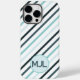 Custom Teal Blue Monogram / Stripes Case-Mate iPhone Case